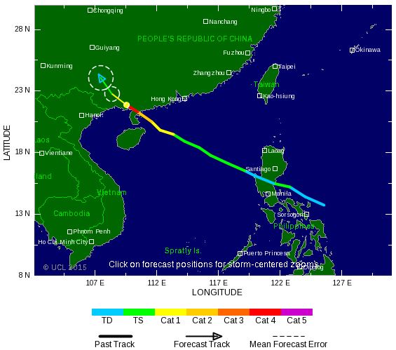 De retour en Mer de Chine, la tempête tropicale poursuivra sa trajectoire au Nord-Ouest en continuant à se renforcer. Le 04 octobre, juste avant d'aborder le Sud de la Chine, la tempête devrait devenir un typhon de classe 1 avec des vents soufflant à 130 km/h et de très fortes pluies. Le Nord-Est du Vietnam pourrait également être touché.