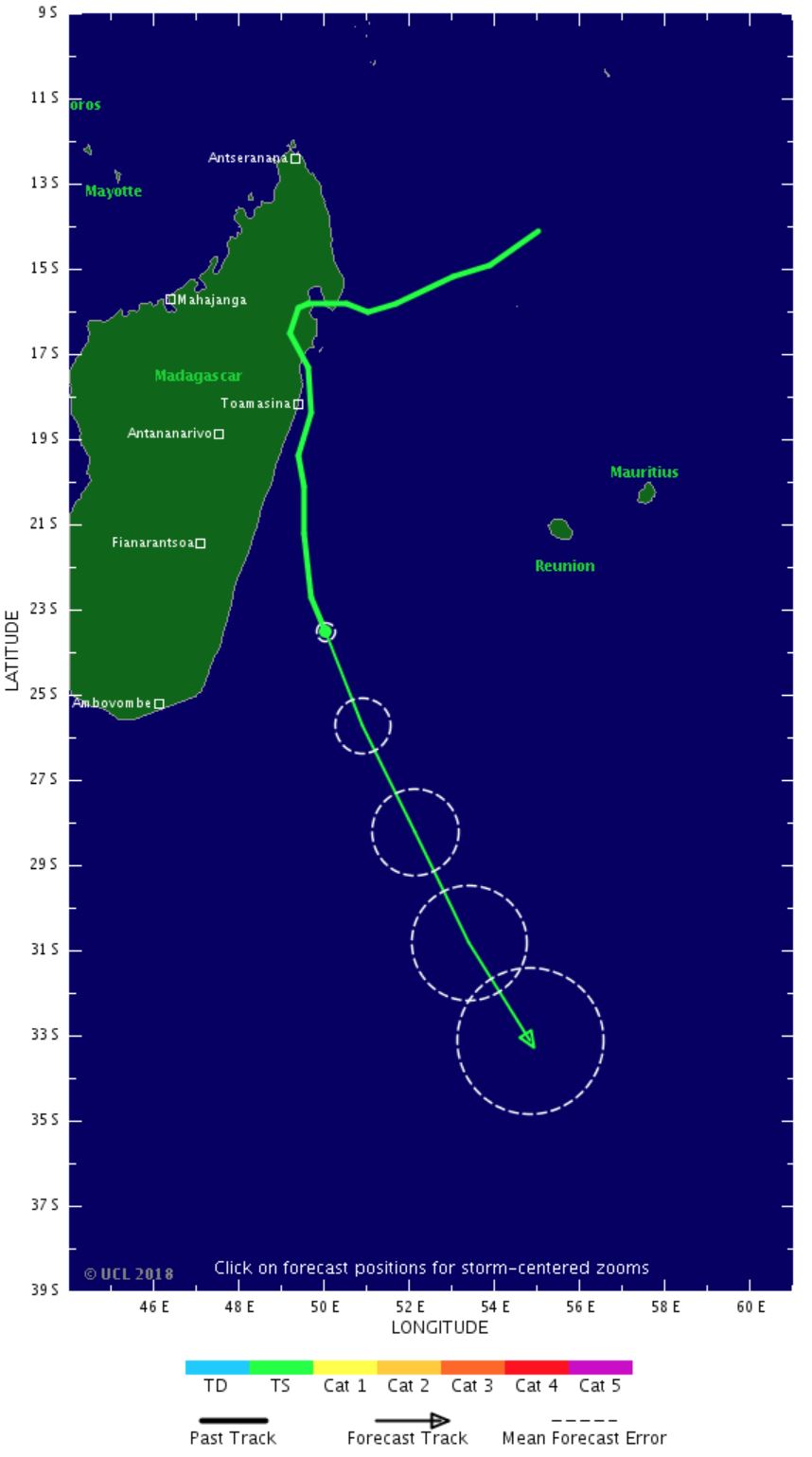 Les récentes images satellites montrent que le phénomène est à proximité immédiate de la péninsule de Masoala qu'il est prévu effleurer par le sud. Le système va poursuivre son rapprochement jusqu'à atterrir entre Cap Masoala et l'Île Sainte-Marie. Les conditions continuent de se dégrader et deviennent dangereuse à proximité de la baie d'Antongil et de l'île Sainte-Marie.