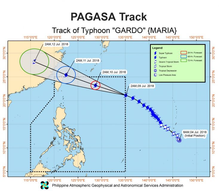Dans un bulletin publié vendredi à 11 heures, le bureau météorologique PAGASA a déclaré que le typhon Maria se trouve déjà à 1900 km à l'est du centre de Luzon, se déplaçant vers le nord-nord-ouest à 15 km / h.