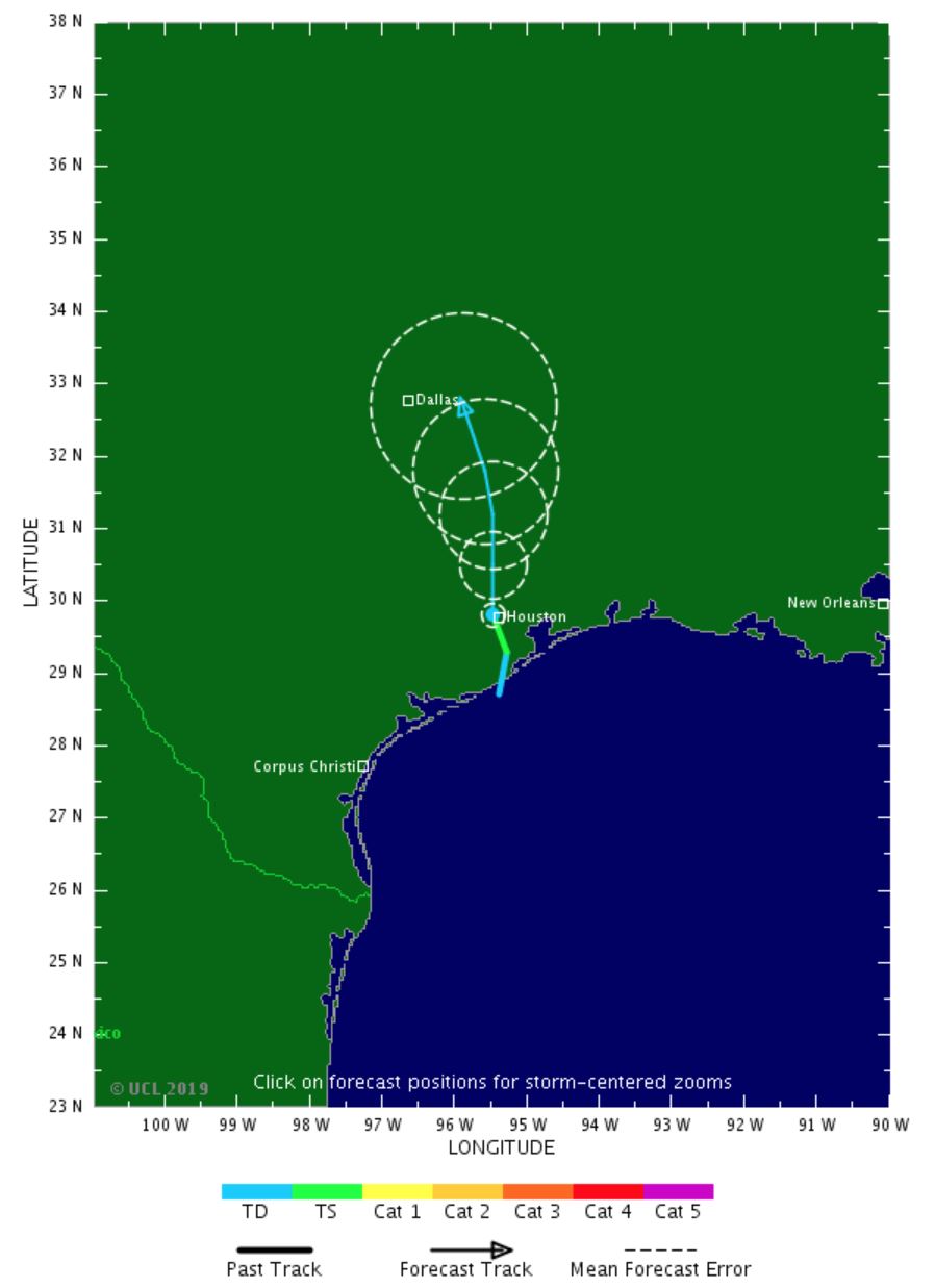 De nombreux modèles de prévisions suggèrent de 150 à 250 mm de pluie avec des quantités isolées plus élevées dans la région. Si ces prévisions se vérifient, la quantité de pluie à tomber serait la plus forte chute de pluie depuis l' ouragan Harvey en 2017.