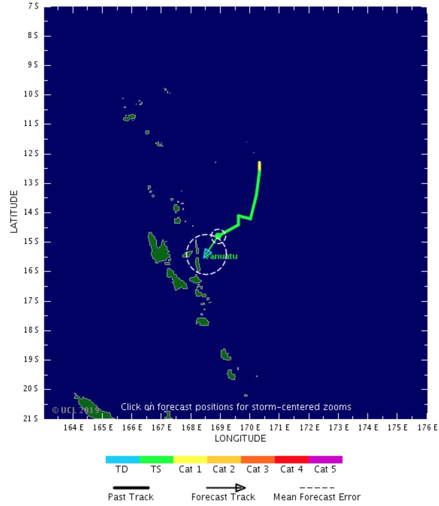 Malgré cet affaiblissement, le système devrait notablement affecter l'Est de l'archipel des Vanuatu avec notamment de très fortes pluies.