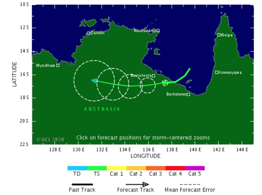 La tempête tropicale Esther qui s'est formé dans le Golfe de Carpentia dans le Nord de l'Australie a touché terre près de la frontière du NT et du Queensland en tant que système de catégorie un.