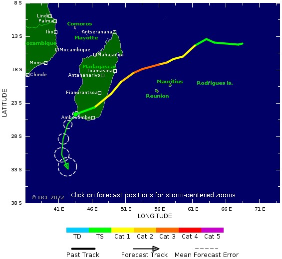 Emnati va poursuivre sa route en direction de l'Ouest Sud-Ouest à Sud-Ouest. Dans le même temps une nouvelle phase de ré-intensification est attendue alors qu'il se rapproche de Madagascar. Un atterrissage est toujours envisagé pour Mardi (fin de journée/nuit) sur les côtes Est de la Grande Île.