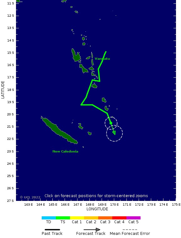 Par la suite, Gina va se rapprocher de la Nouvelle Calédonie. En revanche, les conditions environnementales étant défavorables (cisaillement d'altitude et air sec), le système est prévu s'affaiblir. C'est donc un phénomène fortement afffaibli qui approcherait le territoire.