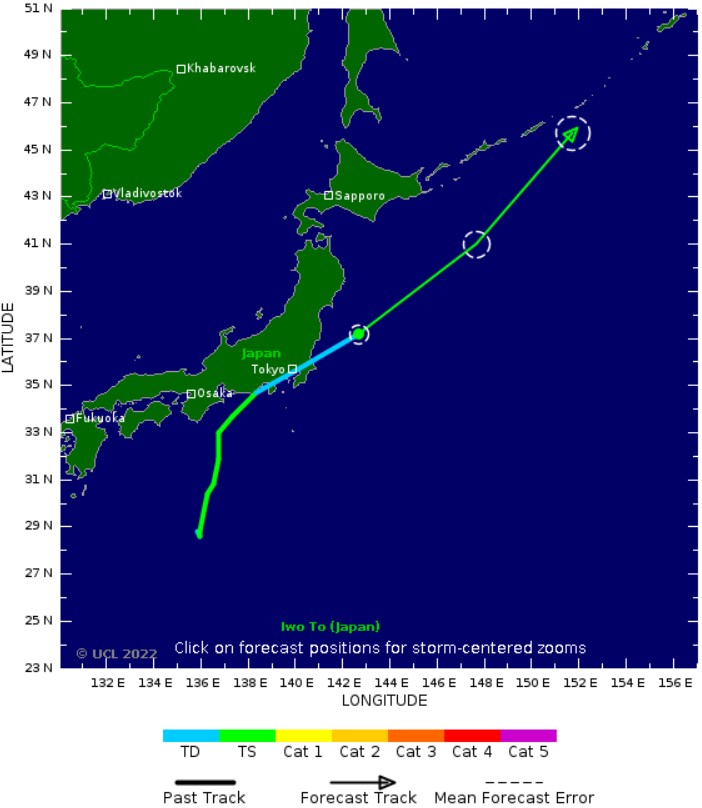 Il devrait se déplacer au large de Tohoku tôt dimanche matin avant de devenir un cyclone extratropical tôt lundi matin. Le système devrait apporter de très fortes pluies le long du littoral Oriental de l'île principale dont l'agglomération de Tokyo.