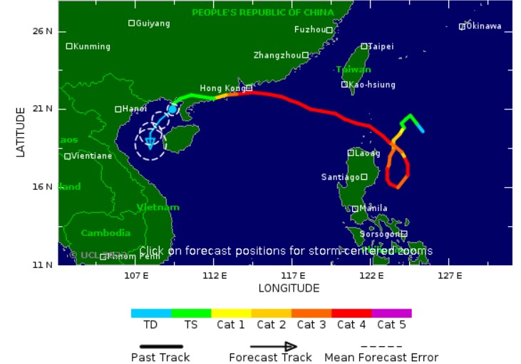 Après avoir traversé le canal de Bashi qui sépare Taïwan des Philippines, le typhon se dirigera vers la province du Guangdong (sud de la Chine) et Hong Kong,.