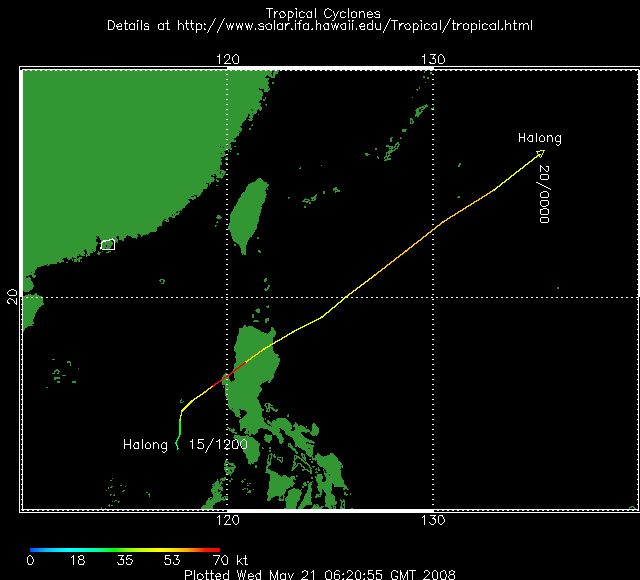 Le typhon Halong qui s'est formée en mer de Chine devrait traverser le Nord des Philippines. Située actuellement à environ 370 km à l’Ouest de Manille, la tempête génère des vents moyens de 120 km/h avec des rafales à 150 km/h.
