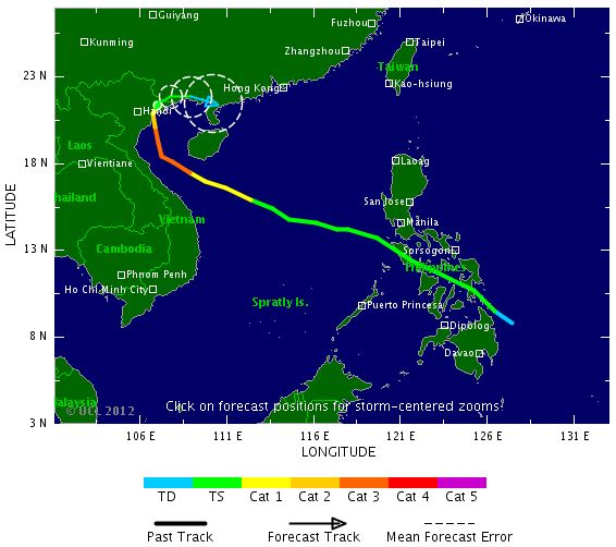 Son-Tinh devrait abordé les côtes Nord du Vietnam d'ici 36 h. A cette échéance, le système devrait être un typhon de classe 1 accompagné de fortes pluies.