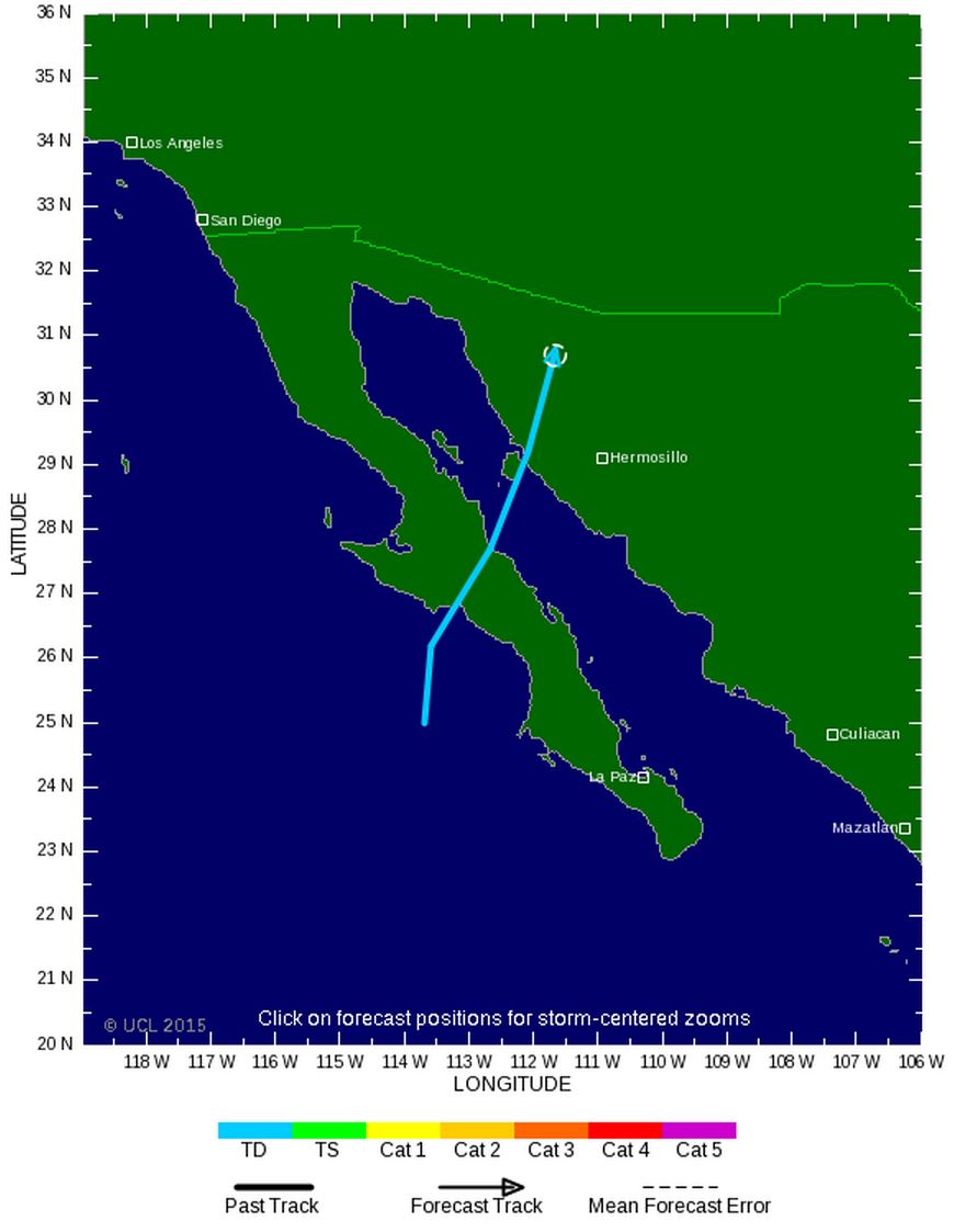 La dépression tropicale 16E s'est formée à proximité des côtes Mexicaine de la Peninsule de Baja (Nord-Ouest du Mexique) et fait route vers le Nord-Est. Accompagné de vent soutenus et de très fortes pluies, cette dépression est susceptible de causer des inondations notables dans les Etats du Nord-Est du Mexique ainsi que dans celui du Nouveau-Mexique dan lequel elle devrait terminer son trajet.