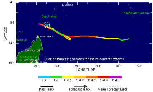 Depuis quelques heures, Fantala à commencer à perdre de son intensité, et être rétrogradé en catégorie 3/5. Il perdra ensuite encore de sa puissance dans les prochains jours.