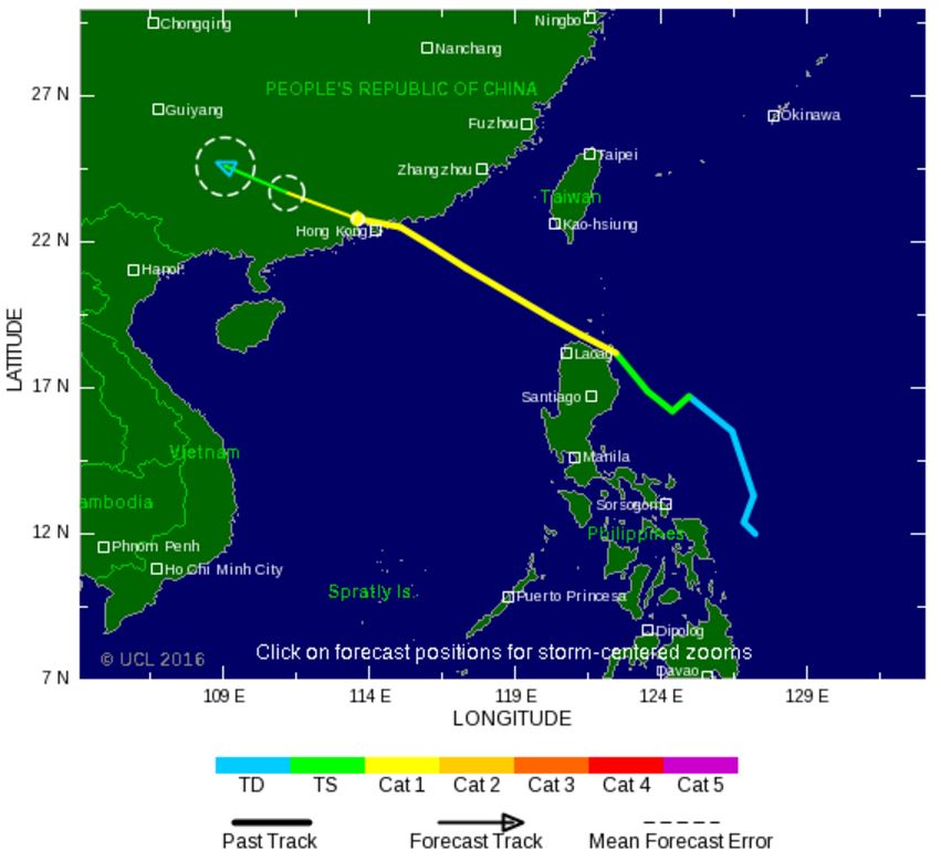 Par la suite, le système poursuivra sa route au Nord Ouest en conservant une intensité de typhon de catégorie 1 avec des vents soufflant à 145 km/h et de fortes pluies jusqu'à ce qu'il touche terre dans le Sud-Est de la Chine le 1er ou le 2 août, vraisemblablement dans la région de Hong-Kong si l'on en croit les dernières modélisations.
