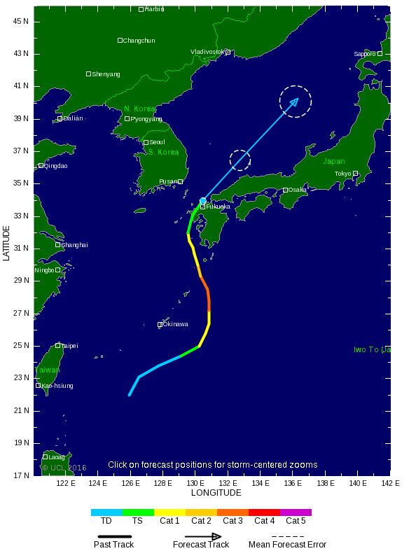 01/09: La dépression tropicale Namtheun vient de se former au Sud de l'archipel nippon des îles Okinawa et fait route en se renforçant vers le Nord-est. Dans les prochaines 24 h le système devrait incurver sa trajectoire vers le Nord en devenant une tempête tropicale. cette trajectoire pourrait la diriger vers l'île occidentale japonaise de Kyoshu qu'elle pourrait atteindre le 03 septembre. A ce stade Namtheum pourrait générer des vents soufflant à 100 km/h et de très fortes pluies susceptibles de provoquer des inondations et des glissement de terrain
