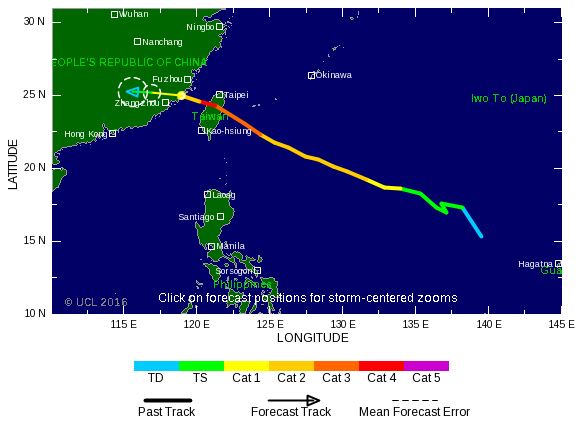 Par la suite Megi devrait poursuivre sa route vers le Sud-Est de la Chine en s'affaiblissant en typhon de catégorie 1. Il devrait aborder la chine le 28 septembre.