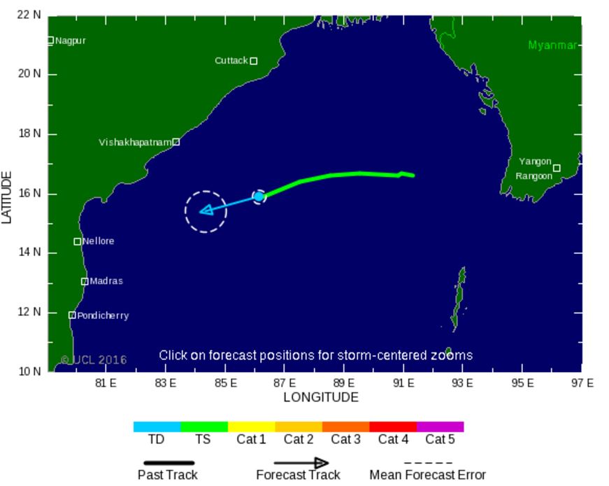 La tempête tropicale Kyant s'est formée au cours de ces dernières heures dans le Golfe du Bengale. Le système fait route au à L'ouest en direction de l'Est de l'Inde qu'elle devrait atteindre le 28 ou 29 octobre. La tempête tropicale ne devrait pas évoluer en cyclone tropical d'ici à ce qu'elle touche terre.