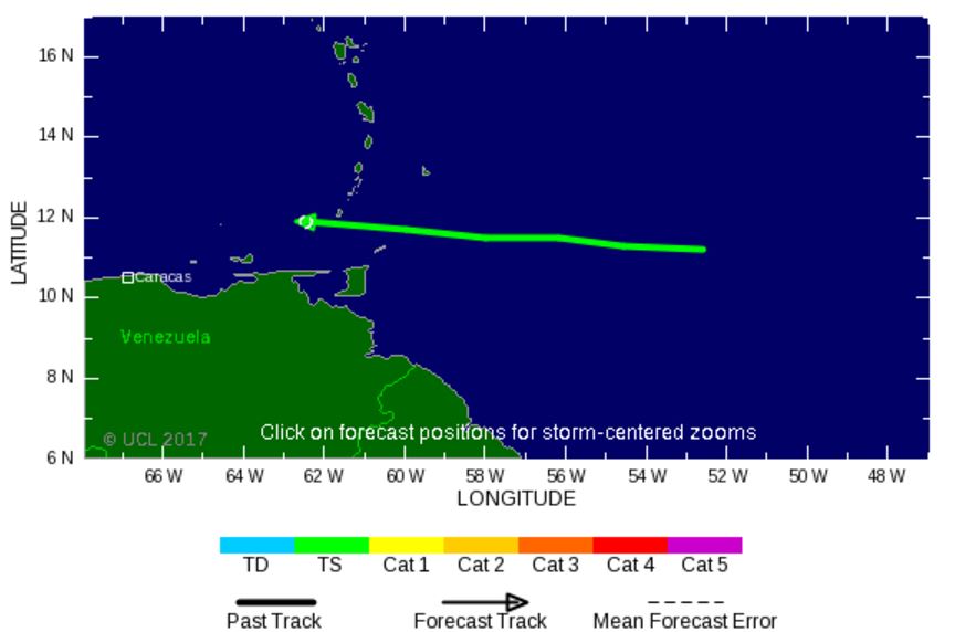 Don devrait toucher Grenade et Saint-Vincent-et-Grenadine d'ici 24 h puis longer les côtes du Vénézuela. La tempête qui est aussi accompagnée de fortes pluies est susceptible de causé des inondations.