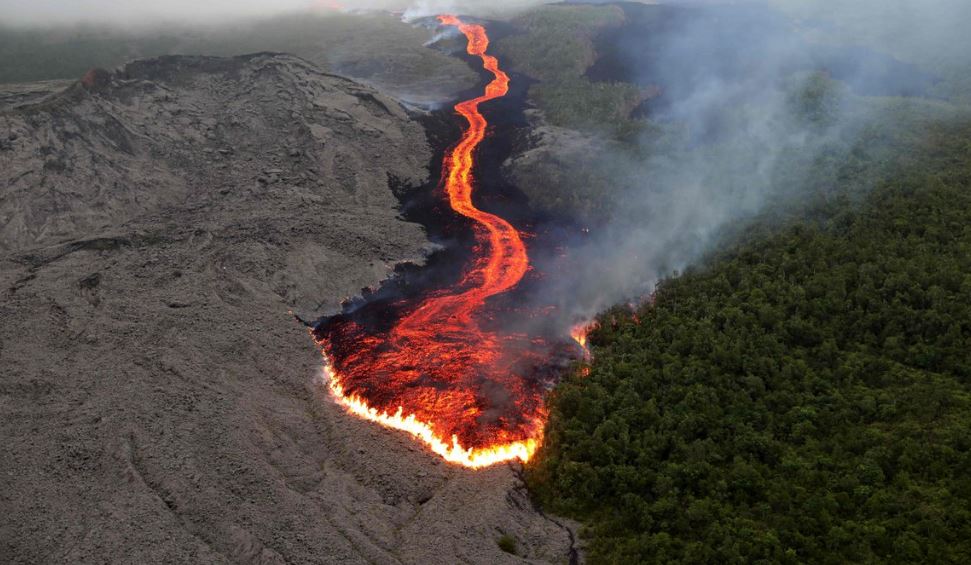 L'éruption a lieu dans l'enclos, la caldeira centrale du volcan, dans une zone totalement inhabitée.