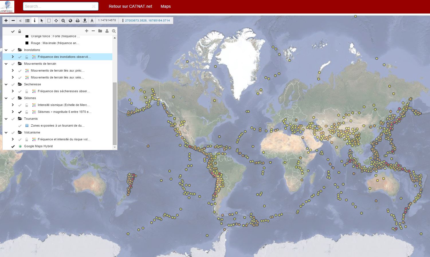 De par ses activités de référencement des catastrophes naturelles mais également pour les besoins des prestations de conseil et d'expertise qu'il réalise, notre cabinet entretient et maintient un grand nombre de données cartographiques dans le domaine des risques naturels.
