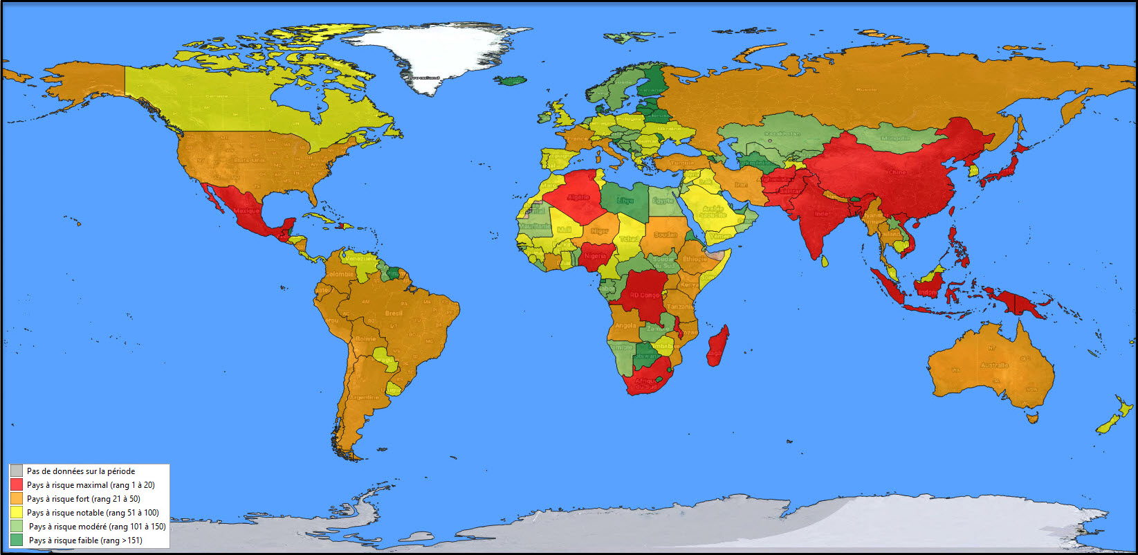 Etabli tous les ans au cours du 1er semestre, ce classement unique en son genre, est basé sur 5 paramètres reflétant l'exposition aux catastrophes naturelles, la gravité (matérielle et humaine) des événements, la vulnérabilité aux risques naturels et la capacité de résilience intrinsèques à chaque pays.