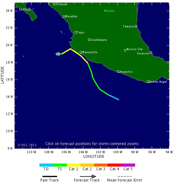 La tempête se trouvait à 140km au sud-est de Manzanillo et était accompagnée de vents soutenus soufflant à 120km/h, selon le bulletin de 03h00 GMT du NHC.