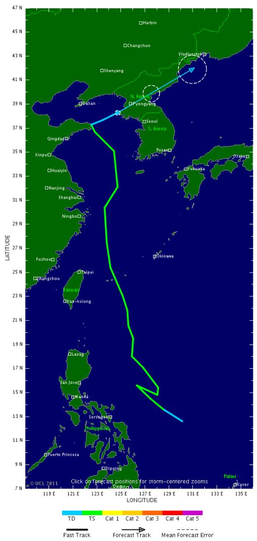 A plus longue échéance, Meari devrait redevenir une tempête tropicale et toucher la Corée du Nord.