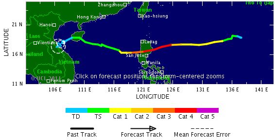 Nalgae devrait poursuivre sa route vers l'ouest en se renforçant progressivement pour atteindre le stade de cyclone de catégorie 1 d'ici 72h. Sa trajectoire pourrait alors l'amener à frapper de plein fouet le nord des Philippines, une région déjà sinistrée après le passage du typhon Nesat.