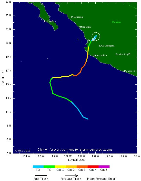 Le système devrait toucher la région de Tomatlan en début de semaine prochaine. On attend donc de très fortes précipitations et des vents supérieurs à 130 km/h.