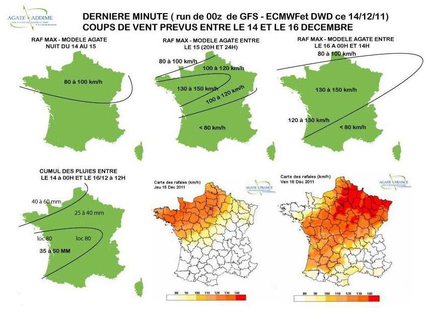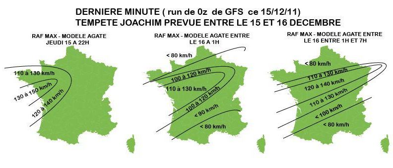 13/12 @ 14:30 : Après la série de coups de vent de cette semaine, le potentiel tempêtueux sera maximal la France à partir de jeudi soir, et ce jusqu'à samedi matin. Une forte tempête (Joachim) est confirmée sur notre pays entre jeudi et vendredi (similaire à Xynthia mais aussi à celles du 25 janvier et 3 février 1990.