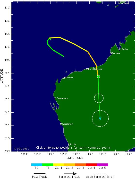 Le point d'impact est pour l'instant prévu dans la région de Port Hedland (Australie Occidentale), déjà légèrement affectée par Iggy. Les dégâts devraient être assez limités car cette zone est l'une des plus désertes de l'Australie.