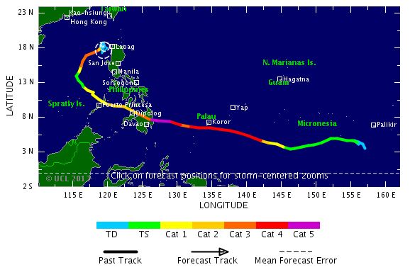 En début de semaine prochaine, ce sont les Philippines qui seront violemment impactées par ce typhon : les autorités philippines ont d'ailleurs d'ores et déjà placé en vigilance cyclonique le sud de l'archipel.
