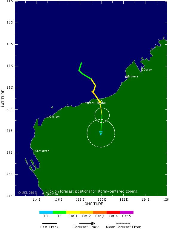 De très fortes pluies et orages violents sont également annoncés dans cette zone côtière du littoral australien, raison pour laquelle les autorités locales ont émis une alerte amenant l'évacuation des populations vers l'intérieur des terres. Toutefois, la densité est plutôt faible dans cette région semi-aride et devrait limiter les éventuelles pertes humaines.