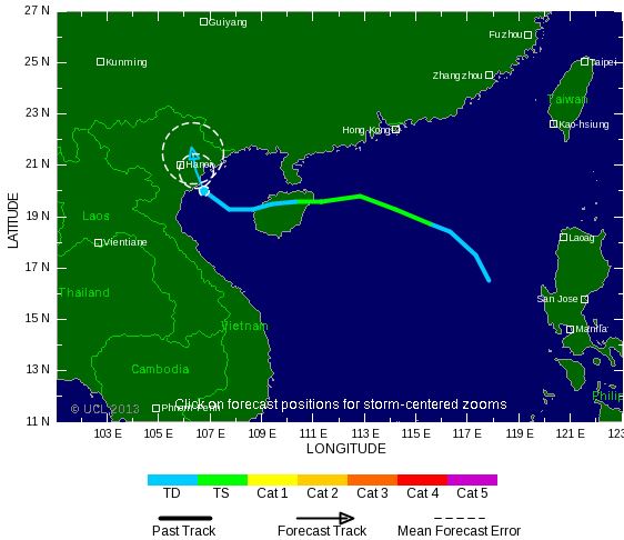 Le système génère des vents de 65 km/h en rafale et devrait se renforcer en tempête tropicale dans les prochaines 24 h. avant de touché le Sud de la Chine et le Nord-Est du Vietnam.
