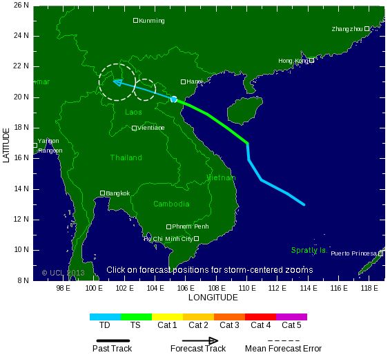 Dès la nuit prochaine, Mangkhut va frapper le littoral avec de forts orages susceptibles de provoquer des inondations, et une surcote liée à la houle cyclonique. Les vents devraient rester relativement modérés pour ce type de phénomène avec des rafales voisines de 100 à 120 km/h. Par la suite, la capitale Hanoï subira de très fortes pluies.