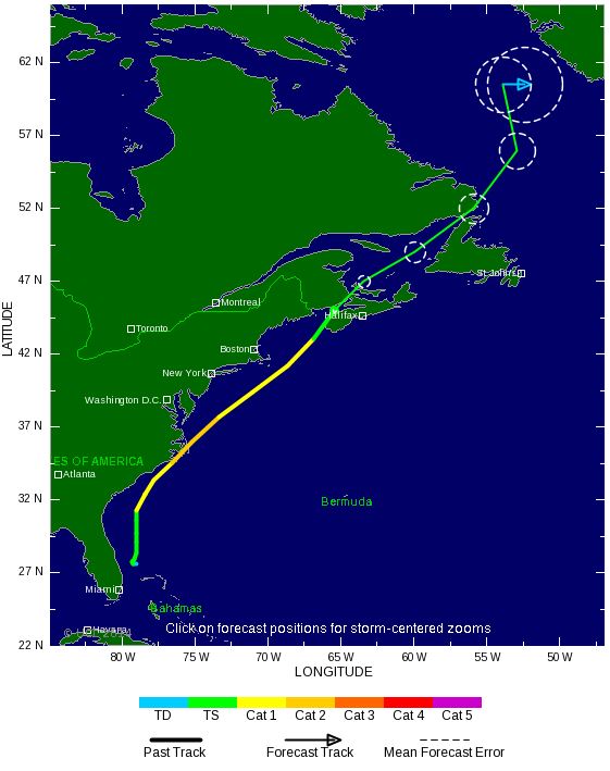 01/07 : La dépression tropicale AL01 s'est formée ces dernières heures au large de la Floride et devrait rapidement s'intensifier pour devenir une tempête tropicale (qui sera nommée Arthur). Le système qui ne devrait pas atteindre le stage cyclonique va remonter vers le Nord en longeant la côte Est des USA jusqu'à la province canadienne de la Nouvelle Ecosse.