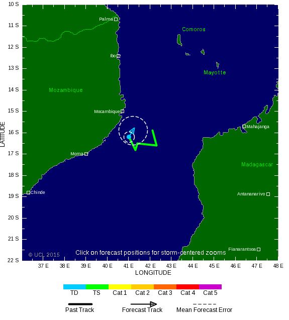 La tempête tropicale 15 s'est formée dans le Canal du Mozambique à l'Ouest de Madagascar et va se diriger vers l'Ouest pour traverser la Grand ïle. Le système génère des vents soufflant à 80 km/h et devrait se renforcer légèrement dans les prochaines heures sans toutefois atteindre le stade cyclonique.