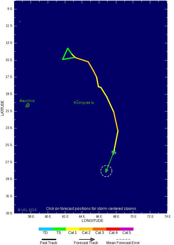Les modèles numériques s’accordent sur un passage du météore au stade de cyclone tropical intense à l’est de Rodrigues à une distance comprise entre 100 et 250km. L'île devrait se trouver dans le demi-cercle non dangereux, où les vents sont toutes proportions gardées moins violents, en fin de soirée de vendredi. Ce scénario reste à affiner.