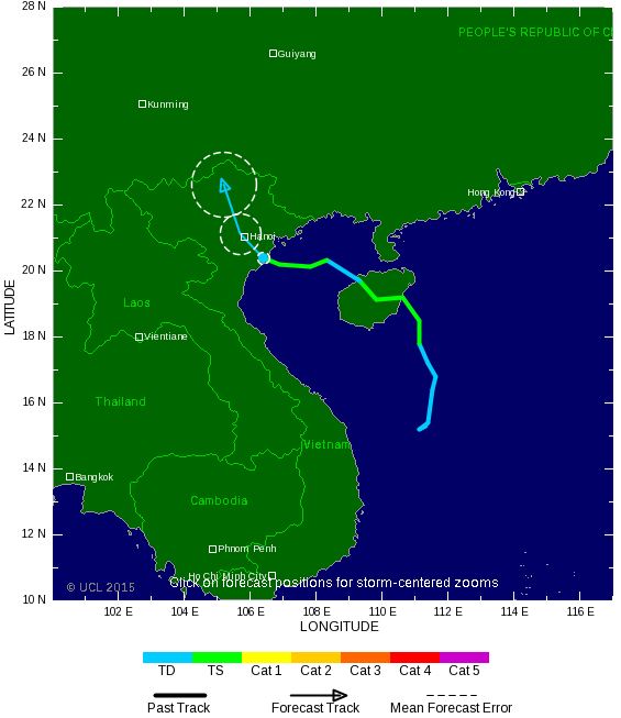 Son oeil, a été localisé à 18,5 degrés de latitude nord et 111,1 degrés de longitude est, ou à 120 kilomètres au sud-ouest de l'île chinoise de Yongxing.