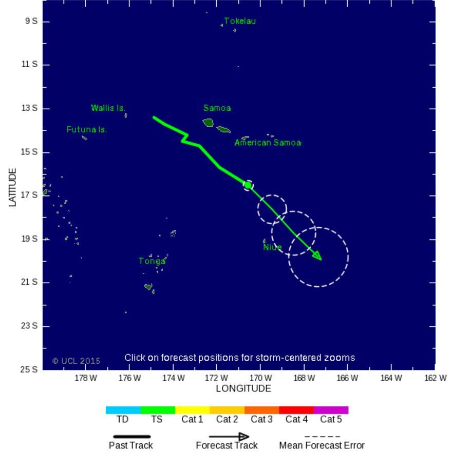 La tempête tropicale Tuni s'est formée au large de l'archipel des îles Samoa (Pacifique Sud) et a pris une trajectoire au Sud-est. Le système qui génère des vents soufflant à 100 km/h et d'importantes pluies ne devrait pas se renforcer. La tempête tropicale devrait terminer sa course au niveau de l'archipel des îles Niue le 30 novembre.