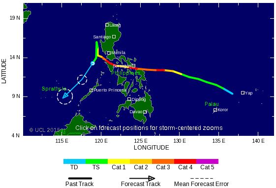 15/12 : Melor a traversé le centre des Philippines et a légèrement incurvé sa trajectoire au Nord-Ouest alors qu'il s'apprête a quitté l'archipel pour retrouver les eaux de la mer de Chine. Actuellement encore de catégorie 4 avec des vents soufflant à 190 km/h, Melor va fortement affecter la région de Manille avec notamment des pluies diluviennes qui font craindre des inondations.