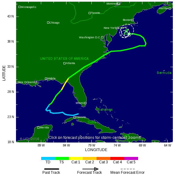 La tempête devrait atteindre le Nord-Ouest de la Floride qu'elle devrait traverser avant de retrouver les eaux de l'Océan Atlantique et de s'éloigner au large. Selon les dernières modélisation ce système ne devrait pas atteindre le stade d'ouragan mais devrait tout de même générer des vents soufflant à 110 km/h et de très fortes pluies susceptibles de causer des inondations.