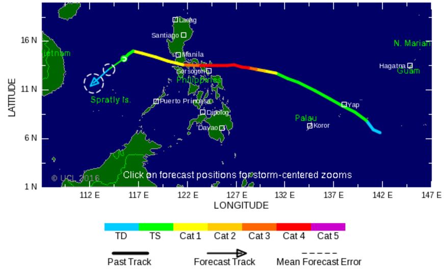 Par la suite, Nock-ten devrait perdre de la vigueur en traversant l'île de Luzon avant de prendre la direction du Sud de la Chine qu'il pourrait atteindre le 28 décembre à une intensité de tempête tropicale.