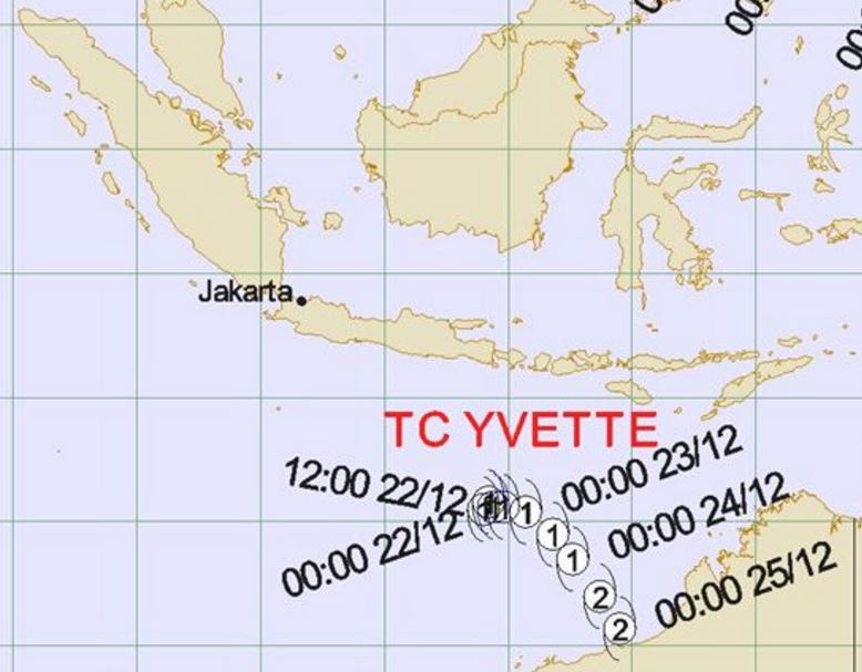 La tempête tropicale Yvette s'est formée au large des côtes du Nord-Ouest de l'Australie et va prendre un cap au Sud-Est dans les 24h prochaines heures ce qui l'amènera à toucher le Nord-Ouest de l'Etat de l'Australie Occidentale à échéance du 24 décembre. D'ici là,le système ne devrait pas se renforcer notablement et devrait rester au stade de tempête tropicale.