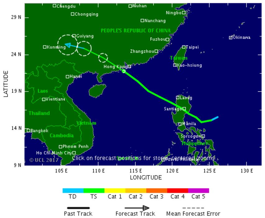 Le CMN a prévu que le typhon se déplacera en direction de la mer méridionale de Chine et touchera terre près des villes de Shenzhen et Zhanjiang. Les provinces du Guangdong, du Jiangxi, de Hainan et du Yunnan connaîtront des pluies torrentielles durant les jours à venir