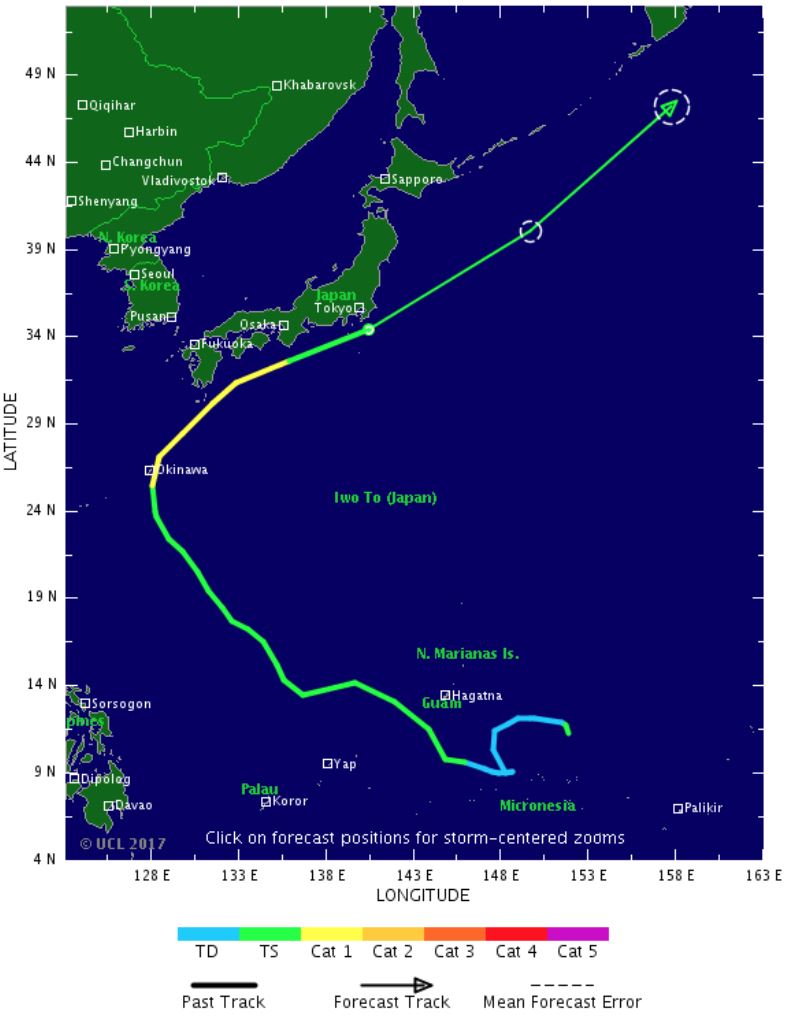 Par la suite le typhon devrait prendre une direction au Nord-Est et rester au large des côtes Sud du Japon en perdant de la puissance.