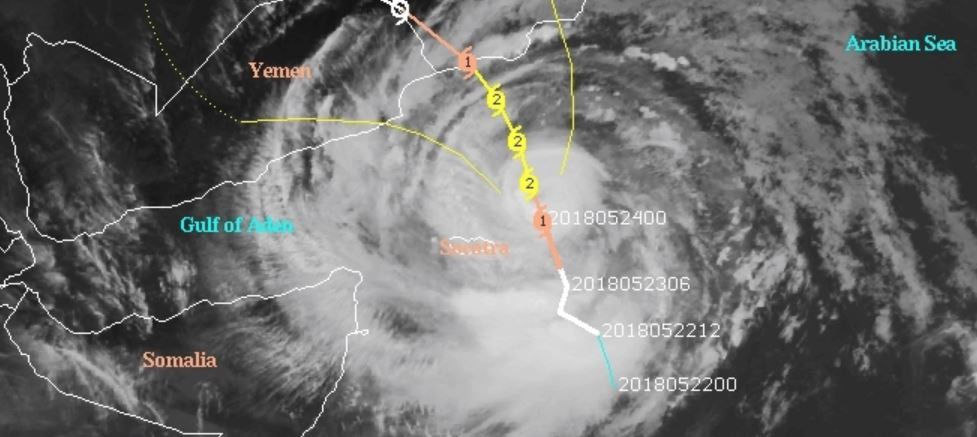 24/05 : Mekunu a redressé sa trajectoire en direction du nord nord-ouest va passer au plus près des côtes orientales de Socotra dans les heures qui viennent, à une distance à priori suffisamment éloignée. De plus, l'île se situe dans le demi cercle dit maniable, ce qui devrait limiter l'impact de MEKUNU.