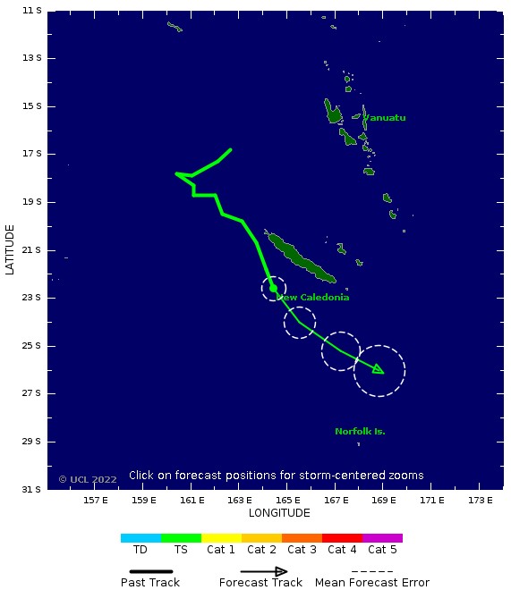 05/04 : La tempête tropicale "Fili" s'est formé au nord-ouest de la Nouvelle-Calédonie en tant que 5ème tempête nommée de la saison cyclonique 2021/22 du Pacifique Sud. Sur la base des dernières prévisions de trajectoire, Fili devrait passer à l'ouest de la Nouvelle-Calédonie mercredi et jeudi.