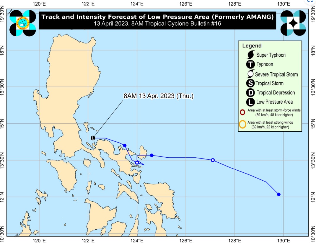 Alors que les prévisions actuelles montrent qu’Amang restera au large au-dessus des eaux à l’est de Luçon pendant les 3 prochains jours, un atterrissage sur la péninsule de Bicol ou la partie nord de l’île de Samar est probable.