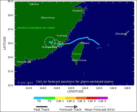 La dépression tropicale 17 s'est formée au Nord-Est de Taïwan et fait route vers l'Ouest-Sud-Ouest en se renforçant lentement. Le système devrait atteindre le stade de tempête tropicale juste avant de toucher terre dans le Sud-Est de la Chine.