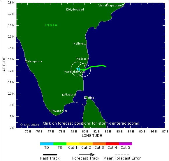 Elle devrait continuer à se déplacer vers le nord-ouest et traverser les côtes du nord du Tamil Nadu et de Puducherry entre Karaikal et Mahabalipuram, près de Puducherry, en tant que tempête cyclonique avec une vitesse de vent de 70-80 km/h, atteignant 90 km/h, pendant l'après-midi du 30 novembre. La dépression profonde au sud-ouest de la baie du Bengale approche des districts côtiers du Tamil Nadu.