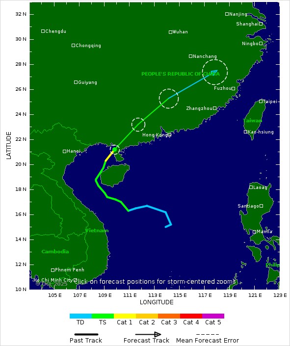 Le système devrait toucher terre entre le 13 et le 14 juin sur l'île Chinoise du Hainan avant de se diriger vers le Sud de la Chine. A cette échéance la tempête générera des vents soufflant à 90 km/h et de très fortes pluies.