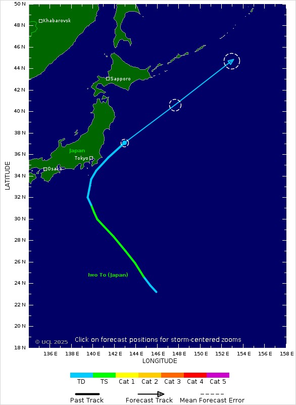 Sepat, ou taifū n° 2 comme on l’appelle au Japon, se déplaçait vers le nord-nord-ouest des îles Ogasawara à une vitesse de 30 kilomètres à l’heure tôt mardi matin. La pression centrale de la tempête a atteint 1 004 hectopascals, avec des vents soutenus allant jusqu’à 64,8 km/h près du centre de la tempête et des rafales atteignant jusqu’à 90 km/h.